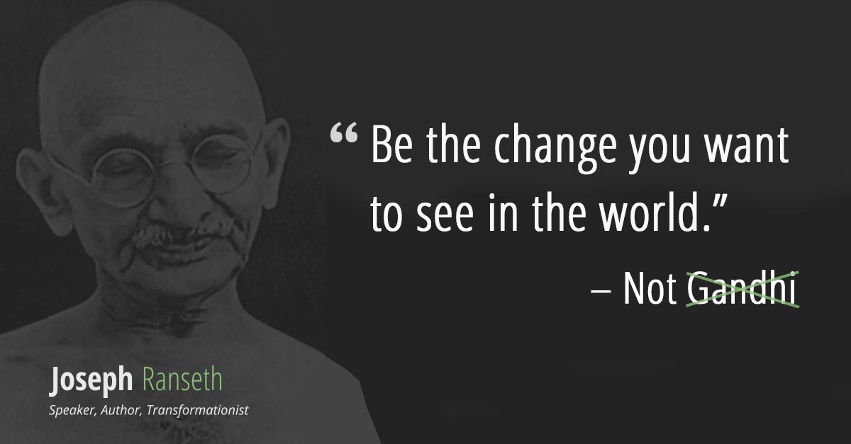 Ok, so Gandhi didn’t actually say those words. While still powerful advice, which I’m sure The Mahatma wouldn’t disagree with, you can find out more about his original (longer) quote from which this misattributed (and punchier) phrase comes from here. It is not simply about modelling behaviour or leading by example, but also about doing the hard work of confronting elements of our inner selves as we seek to be an example of positive change to others.